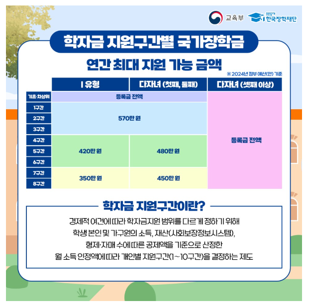 2024년 맞춤형 국가장학금 지원 내용