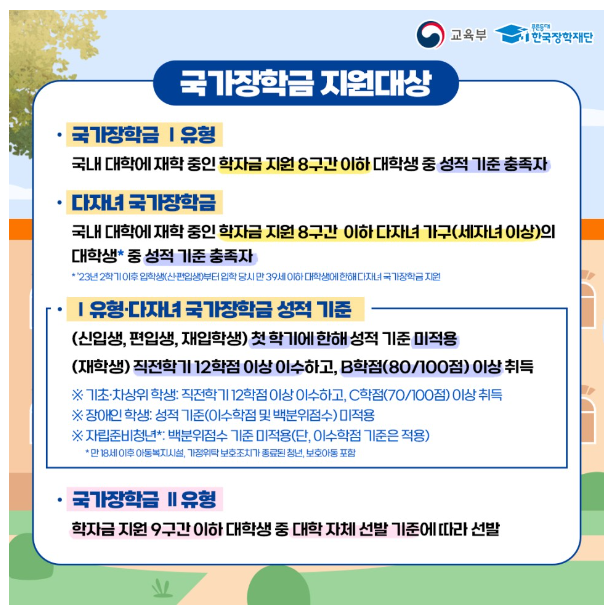 1. 2024년 국가장학금 Ⅰ유형(학생직접지원형)지원대상