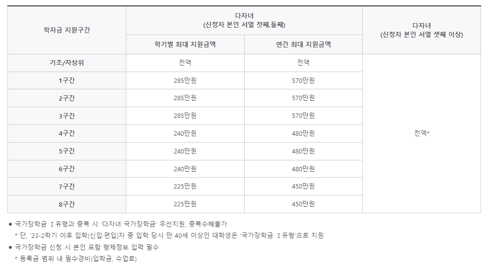 2. 다자녀 국가장학금 지원대상