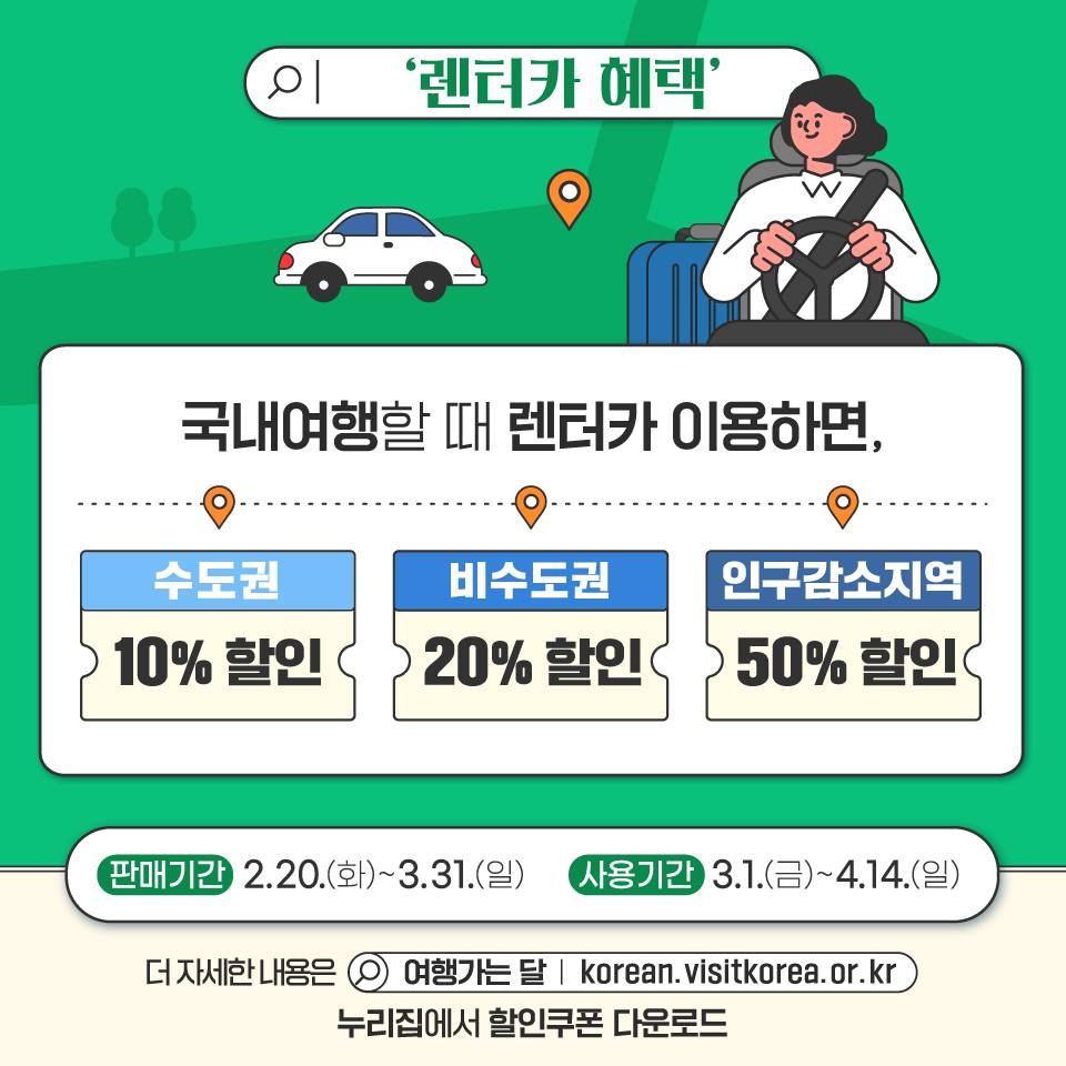(렌터카) 렌터카 이용 시 수도권 10%, 비수도권 20%, 인구감소지역 50% 할인 제공