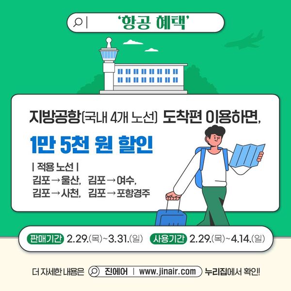 (항공) 지방공항 도착 노선 이용 시 1만 5천 원 할인, 8천 명 규모