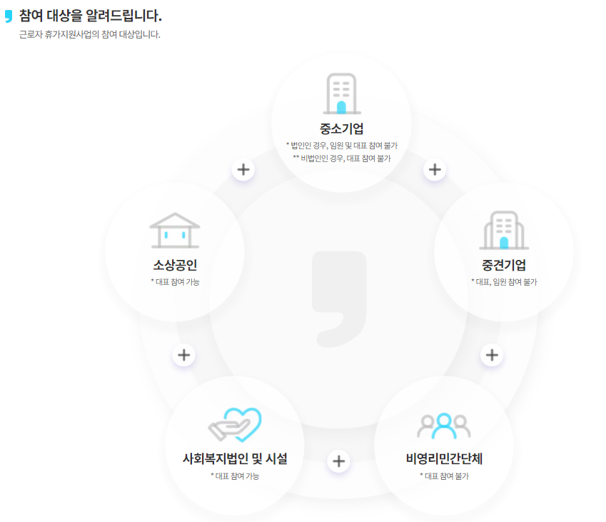 - 근로자 휴가지원 사업은 직장 내 자유로운 휴가문화 조성 및 국내여행 활성화에 있습니다.