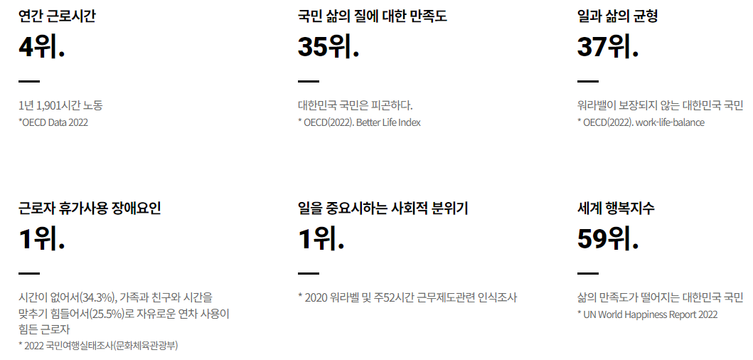 대한민국의 근로자는 여유가 없는 삶을 지내고 있습니다. 항상 피곤하고 여유가 없는 삶을 보내고 있는 현실입니다.