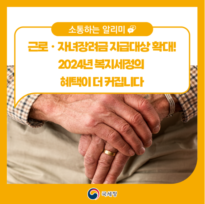 근로 · 자녀장려금 지급대상 확대로 인해 2024년 복지세정의 혜택이 더 커집니다.