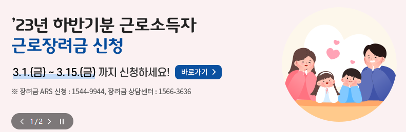 근로 · 자녀장려금이 하반기분 신청을 받습니다. 3월1일(금)부터 3월 15일 까지입니다.