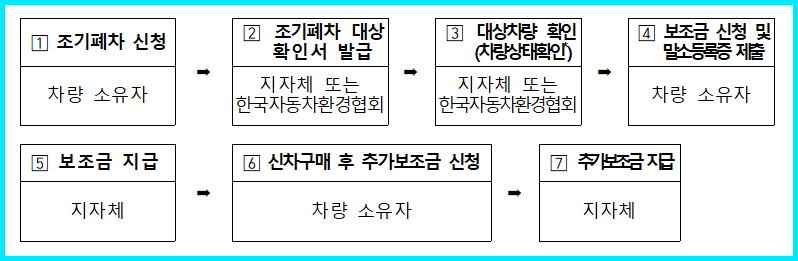 추가 보조금 청구 (신차 구매시) : “대상차량 확인(차량상태확인)서”를 교부받은 자동차 소유자는 4개월 이내 협회에 추가 보조금 지급 청구서류를 제출 (단, 추가보조금 지급 조건 대상 확인 필요)