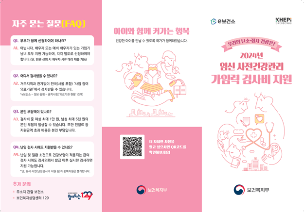 보건복지부는 16개 시·도와 함께 임신 준비 부부가 임신·출산의 고위험요인을 조기에 파악할 수 있도록 ‘임신 사전건강관리 지원사업’을 4월부터 시행합니다.