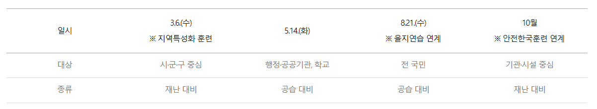 · 민방위의 날 민방위훈련 실시 : 매월15일