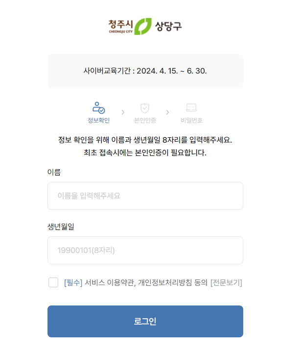 여기서 본인인증을 하고 수강하시면 됩니다.