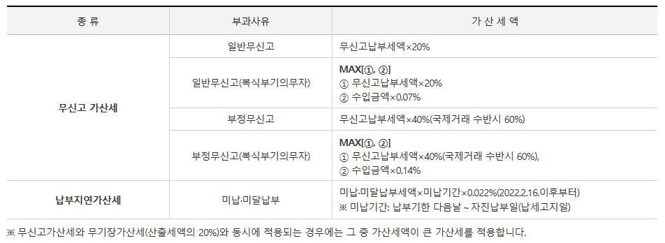 - ※ 기한내 신고·납부하지 않으시면 무신고가산세와 납부지연가산세를 추가로 부담하실 수 있습니다.