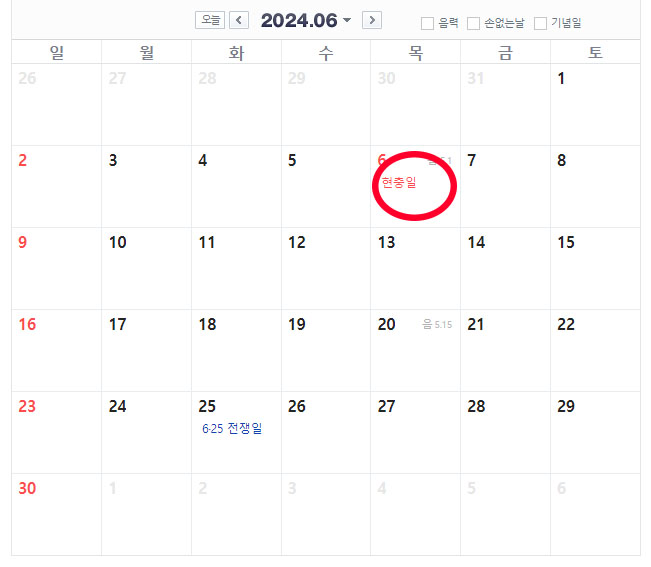 6월 6일은 현충일인데 그다음 날 7일은 대체공휴일일까요?