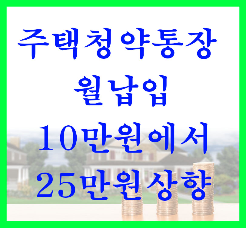월 25만원으로 상향하여, 통장 가입자가 청약 통장 소득공제(300만원 한도)혜택등을 받을 수 있습니다.