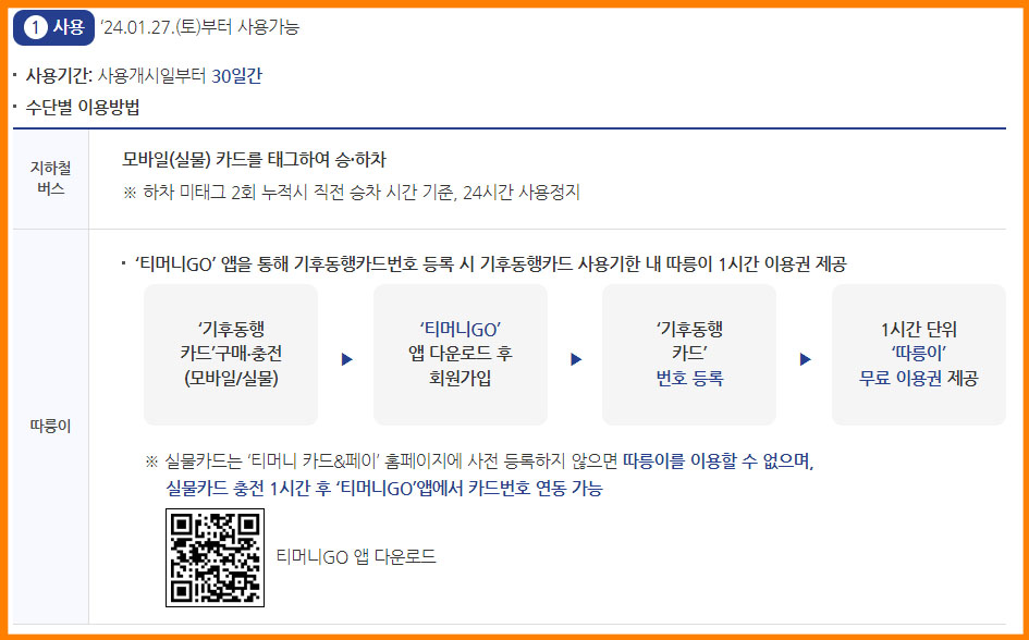 - 2024년 01월 23일(화)부터 모바일 및 실물카드 구매 및 충전이 가능