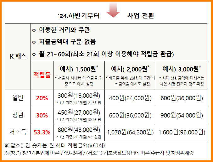 일반 시내버스나 지하철 외에도 GTX-A, 광역버스 등 고비용 수단을 이용하는 경우에도 K-패스 혜택을 제공하여 장거리 출퇴근에 따른 부담도 완화할 계획입니다.