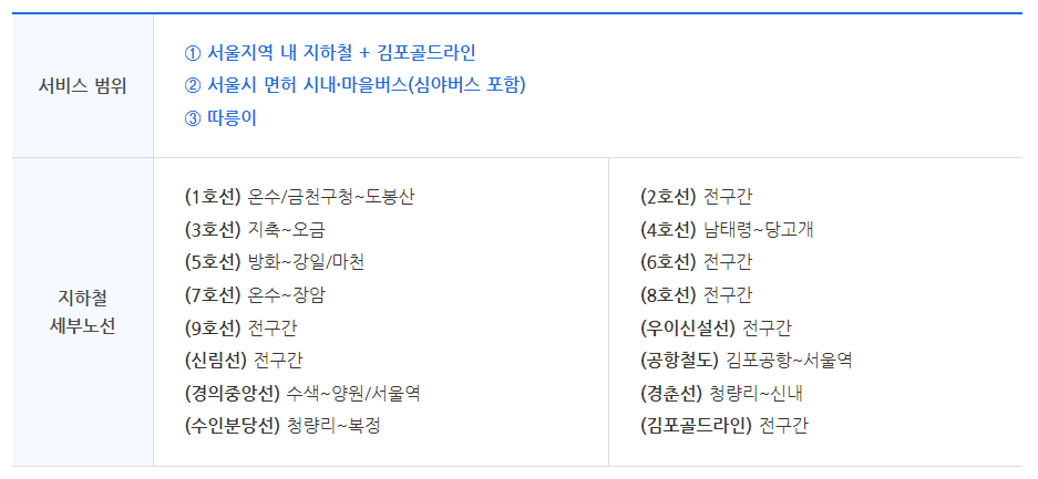 - 일주일 동안 무제한 이용할 수 있어, 장기적으로 대중교통을 많이 이용하는 사람들에게 적합합니다.