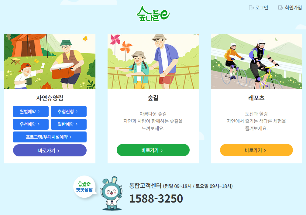 - 숲나들이 자연휴양림 홈페이지(www.foresttrip.go.kr) 접속