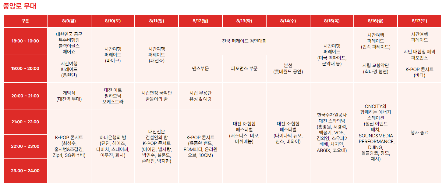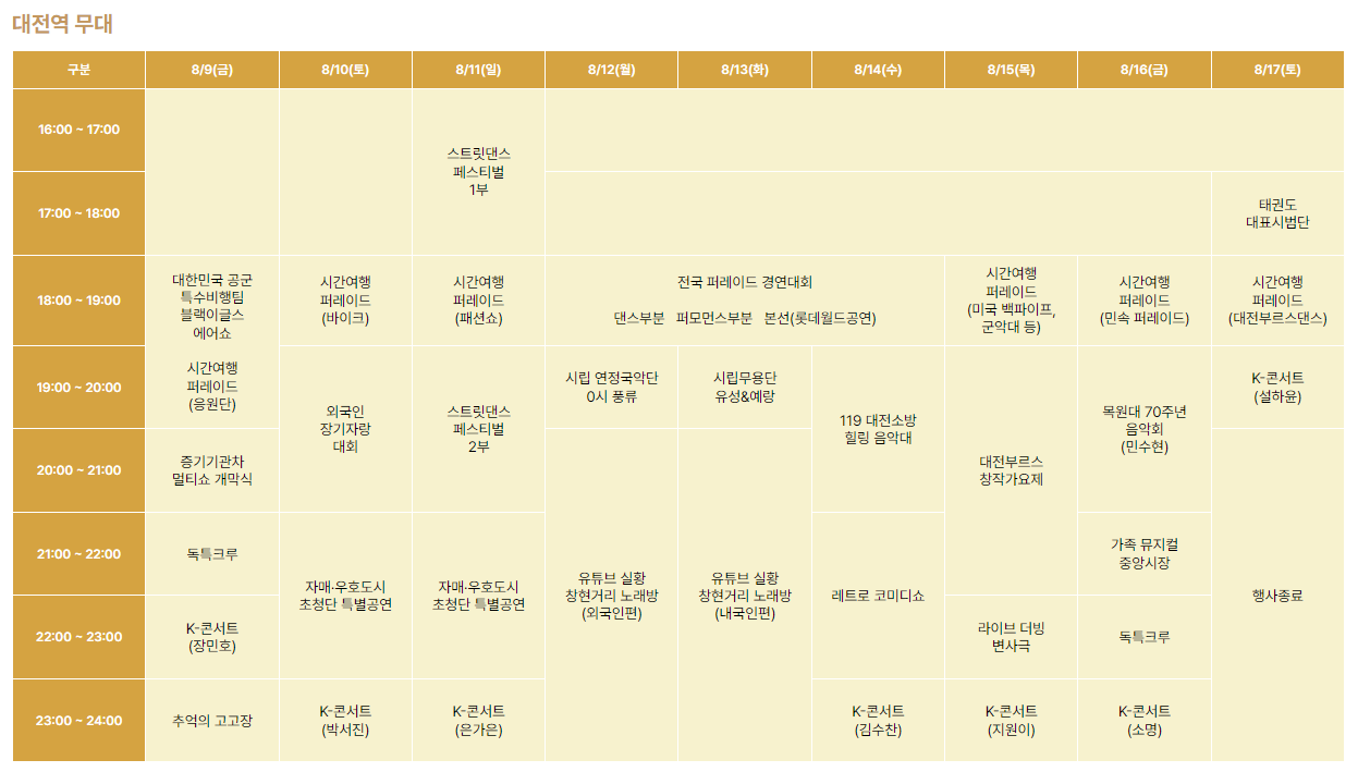 대전역 무대 콘서트 라인업