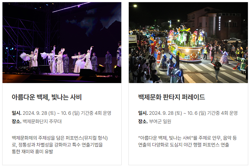 - 백제문화 판타지 퍼레이드 : 도심지 야간행렬 퍼포먼스