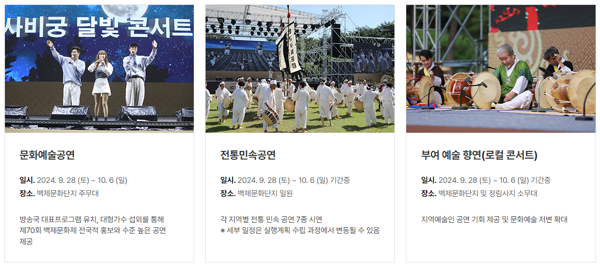 7. 연계프로그램 - 2024 부여국가유산 미디어아트, 사비인 화합한마당, 부여 하루여행 백제를 느끼다 3개 프로그램