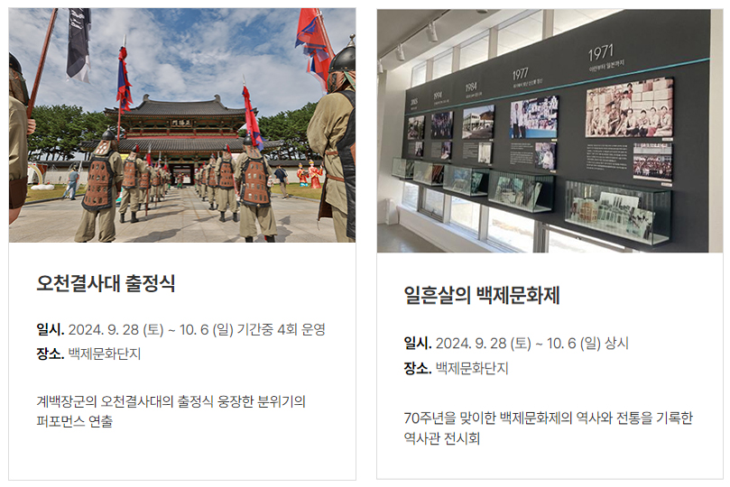 - 일흔살의 백제문화제 : 69년간의 백제문화제의 역사와 전통을 기록한 역사관 전시