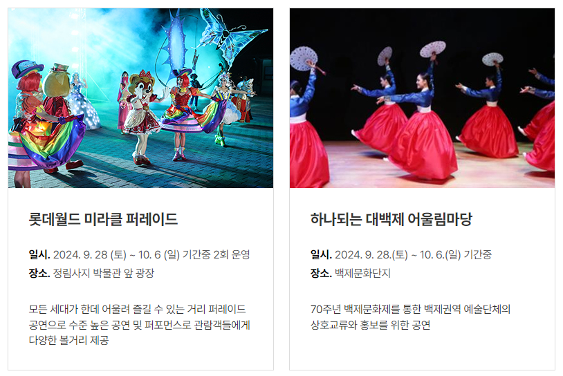 4. 공연프로그램 - 문화예술공연, 문화예술공연, 하나되는 대백제 어울림마당, 롯데월드 퍼레이드 등 8개 프로그램